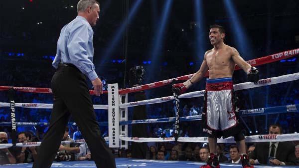El ex campeon mundial de los medianos Sergio Martinez perdio por paliza (KOT10) con el portorriqueño Miguel Cotto despues de caer cuatro veces, 3 en el primer round. Su entrenador, Pablo Sarmiento, frenó la pelea antes del comienzo del décimo capitulo.